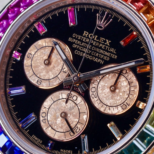 Rolex Daytona 116505 “AM RAINBOW” Black Dial Aftermarket Rainbow Set Rose Gold 40mm