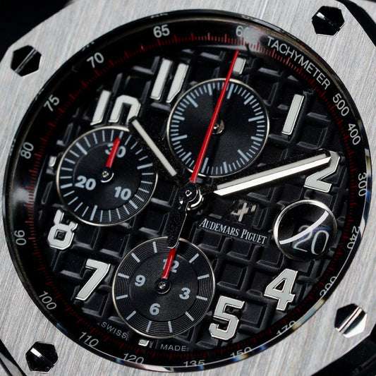 Audemars Piguet Royal Oak Offshore 26470ST.OO.A101CR.01 “WHITE VAMPIRE” Black Dial Red Accents Stainless Steel White Rubber Strap Chronograph 42mm