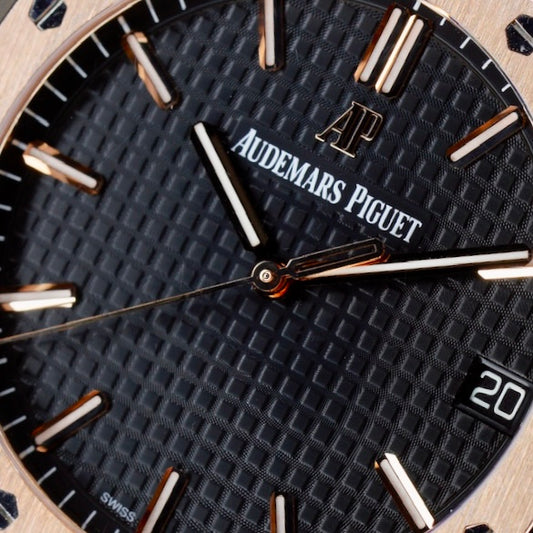 Audemars Piguet Royal Oak 15500OR.OO.D002CR.01 Black Dial Rose Gold Leather Strap 41mm