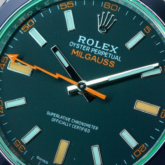 Rolex Milgauss 116400GV Black Dial Green Crystal Orange Accents Stainless Steel 40mm 2022