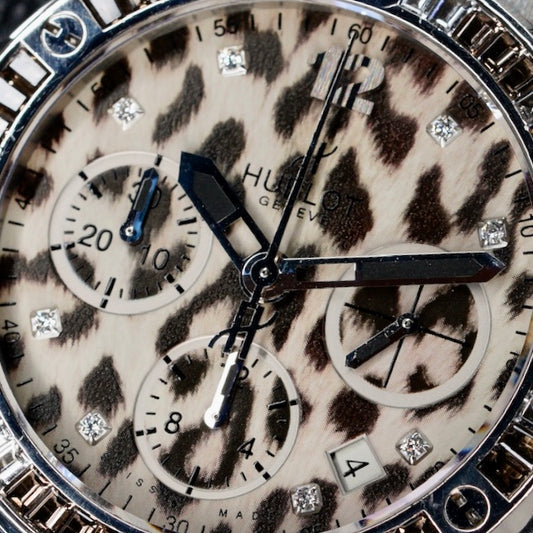 Hublot Big Bang 341.CW.7717.NR.1977 “SNOW LEOPARD” White Leopard Dial Diamond Bezel Leopard Strap 41mm
