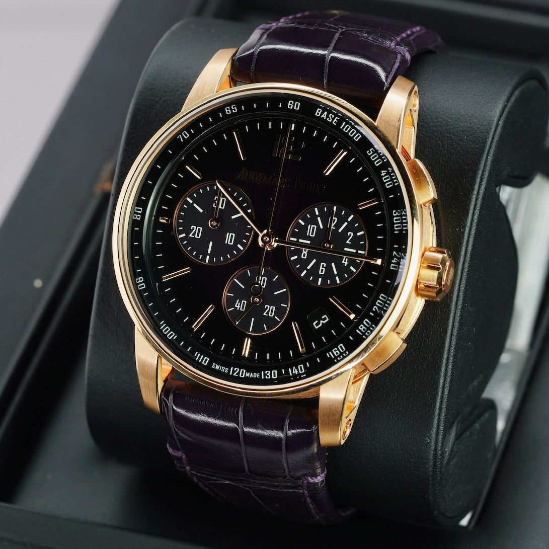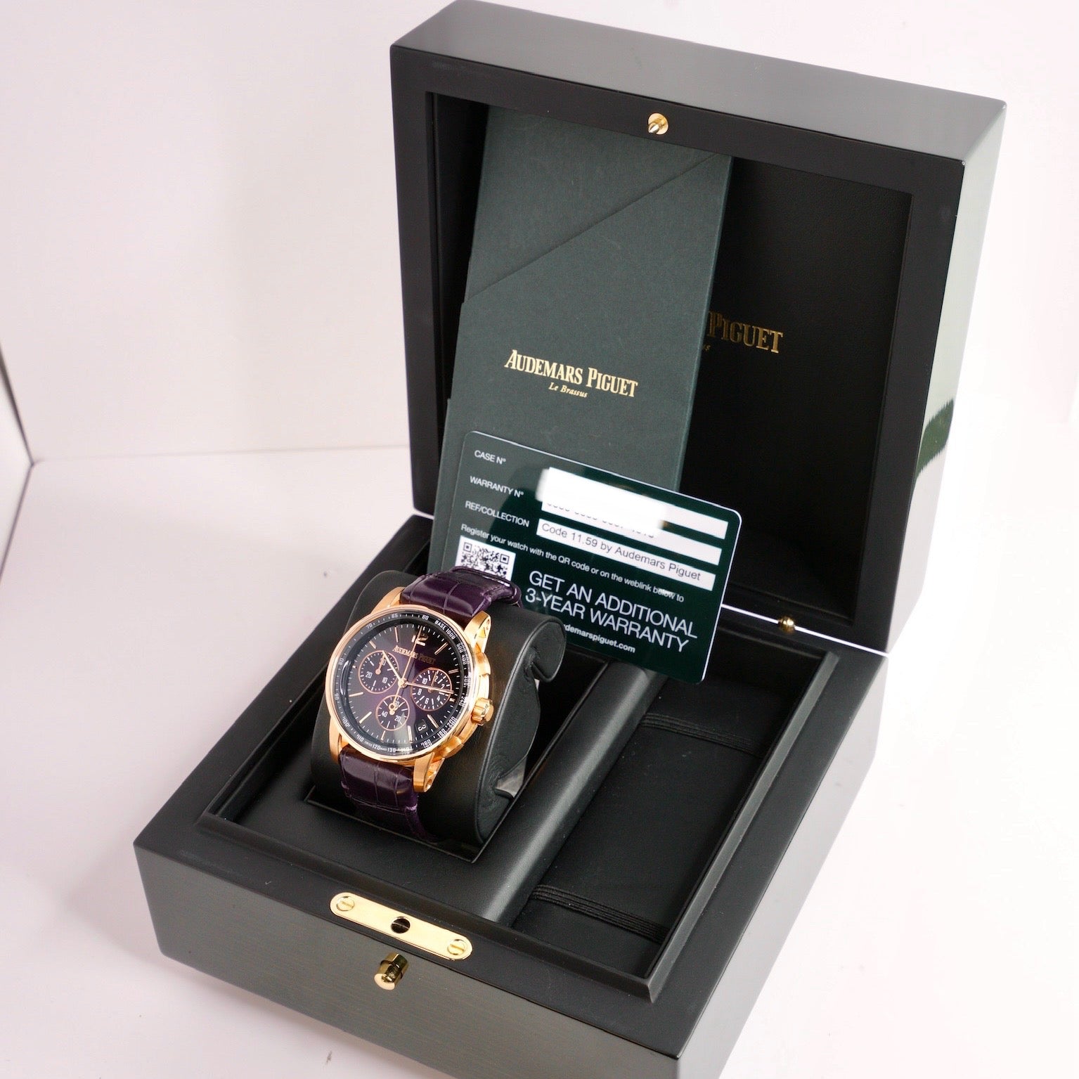 Audemars Piguet Code 11.59 26393OR.OO.A002KB.02 Smoked Lacquered Purple Dial Rose Gold Purple Leather Strap 41mm