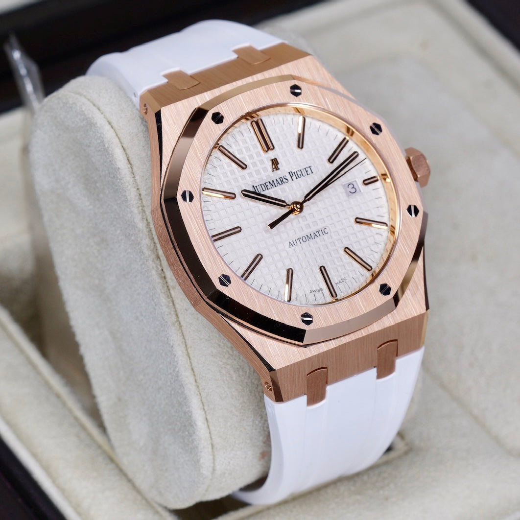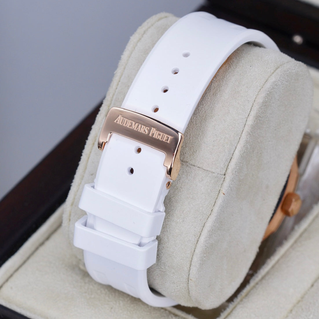 Audemars Piguet Royal Oak 15400OR.OO.D088cCR.01 White Dial Rose Gold White Leather Strap 41mm 2015
