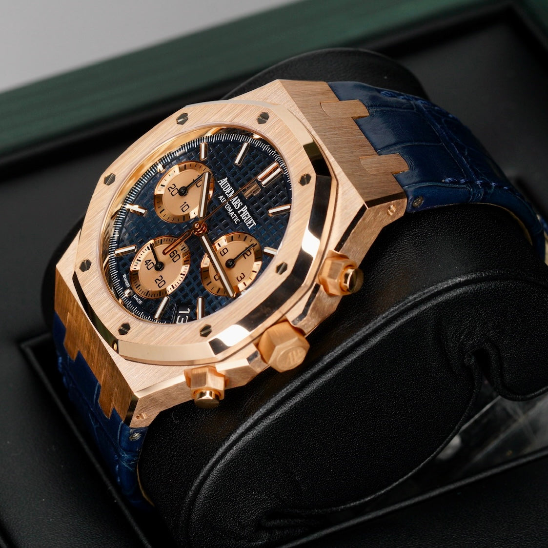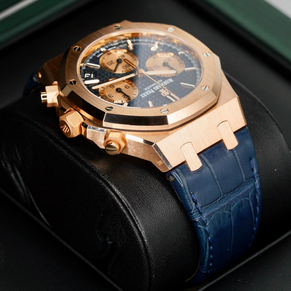 Audemars Piguet Royal Oak 26239OR.OO.D315CR.01 Blue Dial Rose Gold Blue Leather Strap Chronograph 41mm