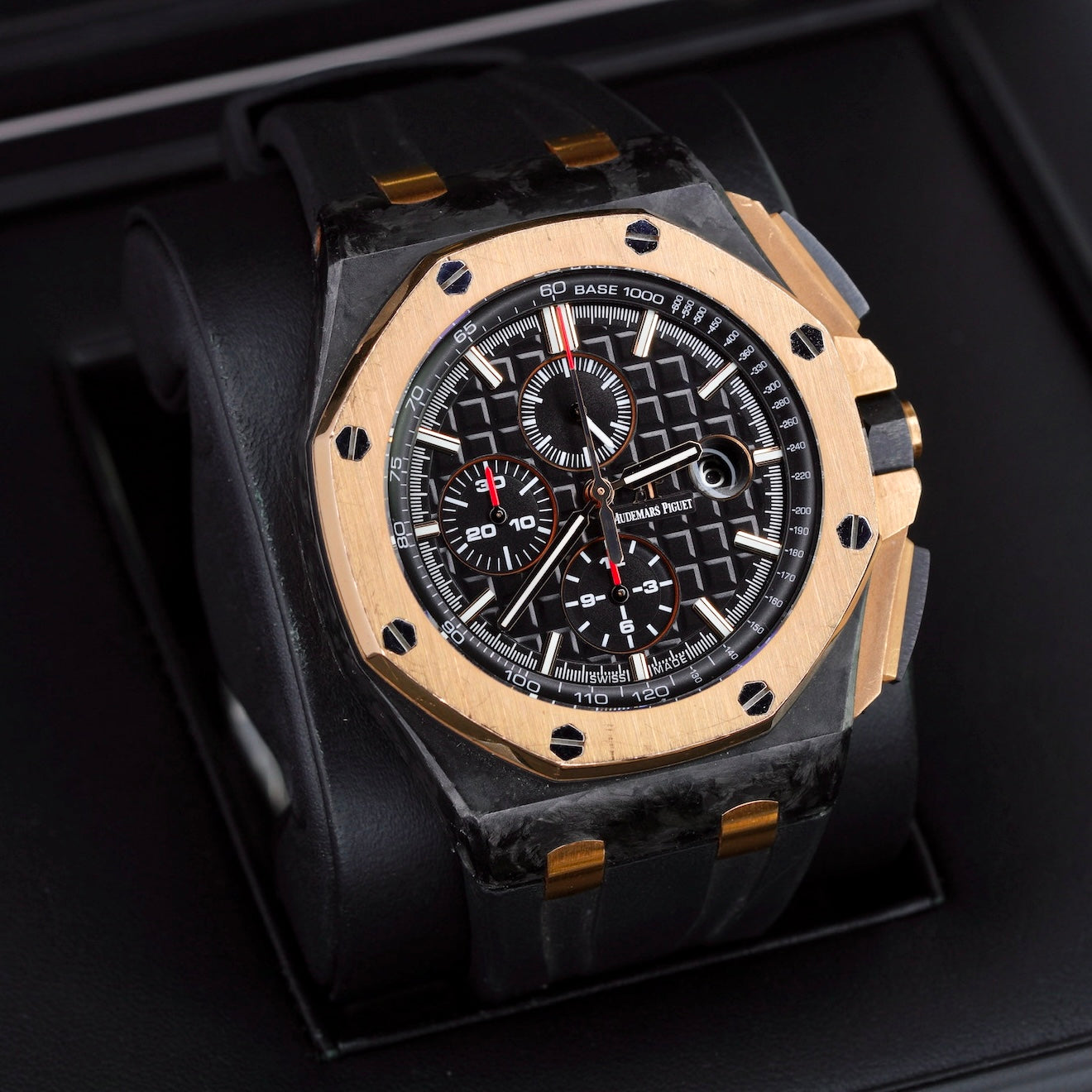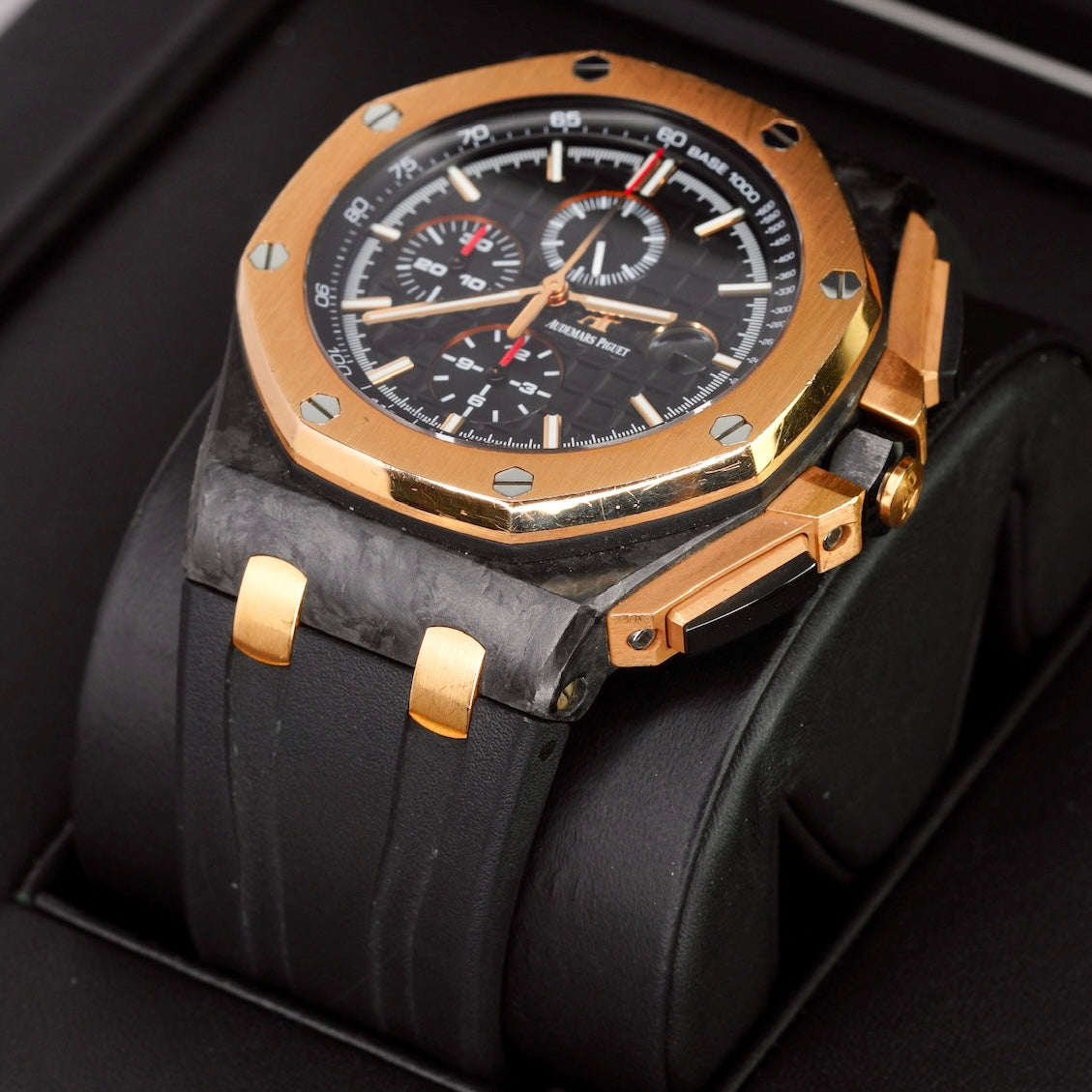 Audemars Piguet Royal Oak Offshore 26406FR.OO.A002CA.01 “QEII CUP” Black Dial Carbon Case Rose Gold Bezel Chronograph 44mm