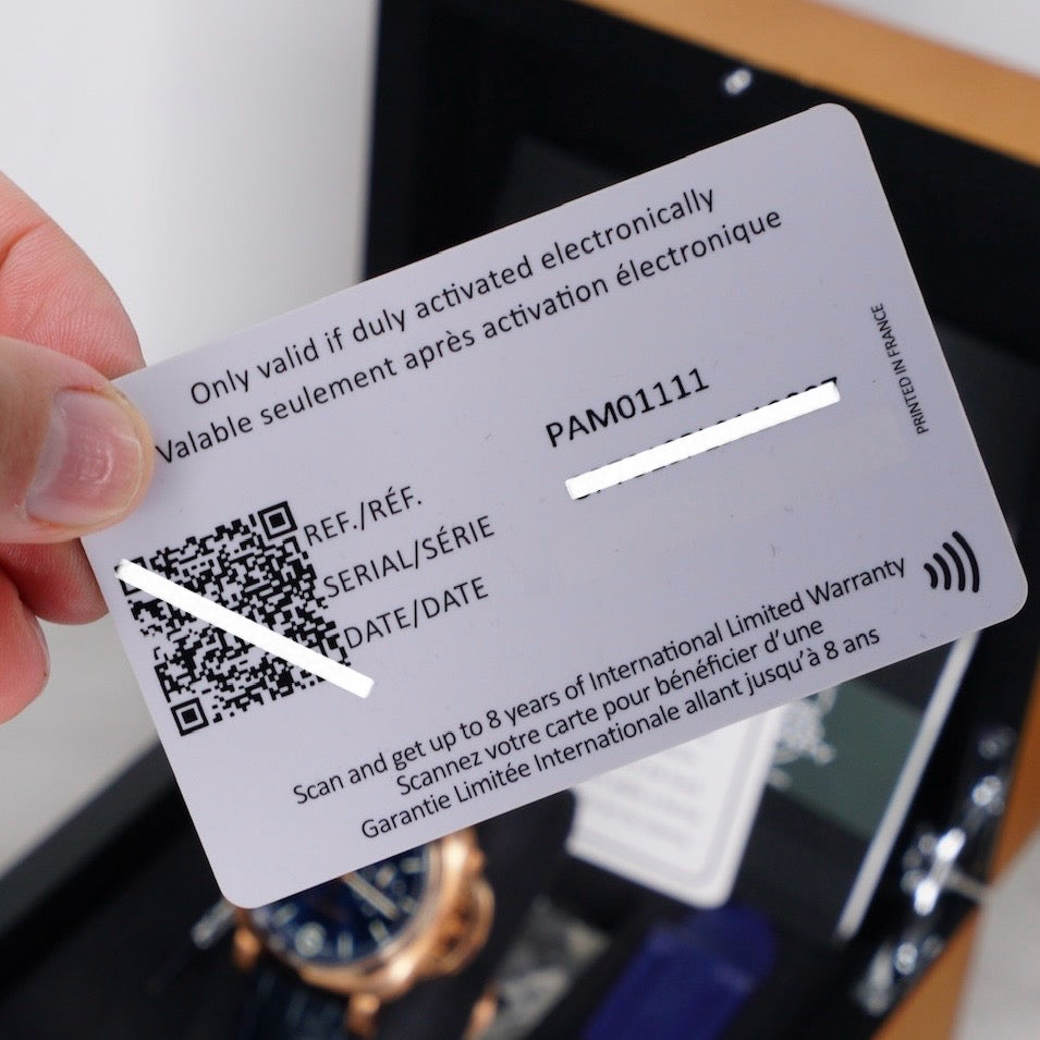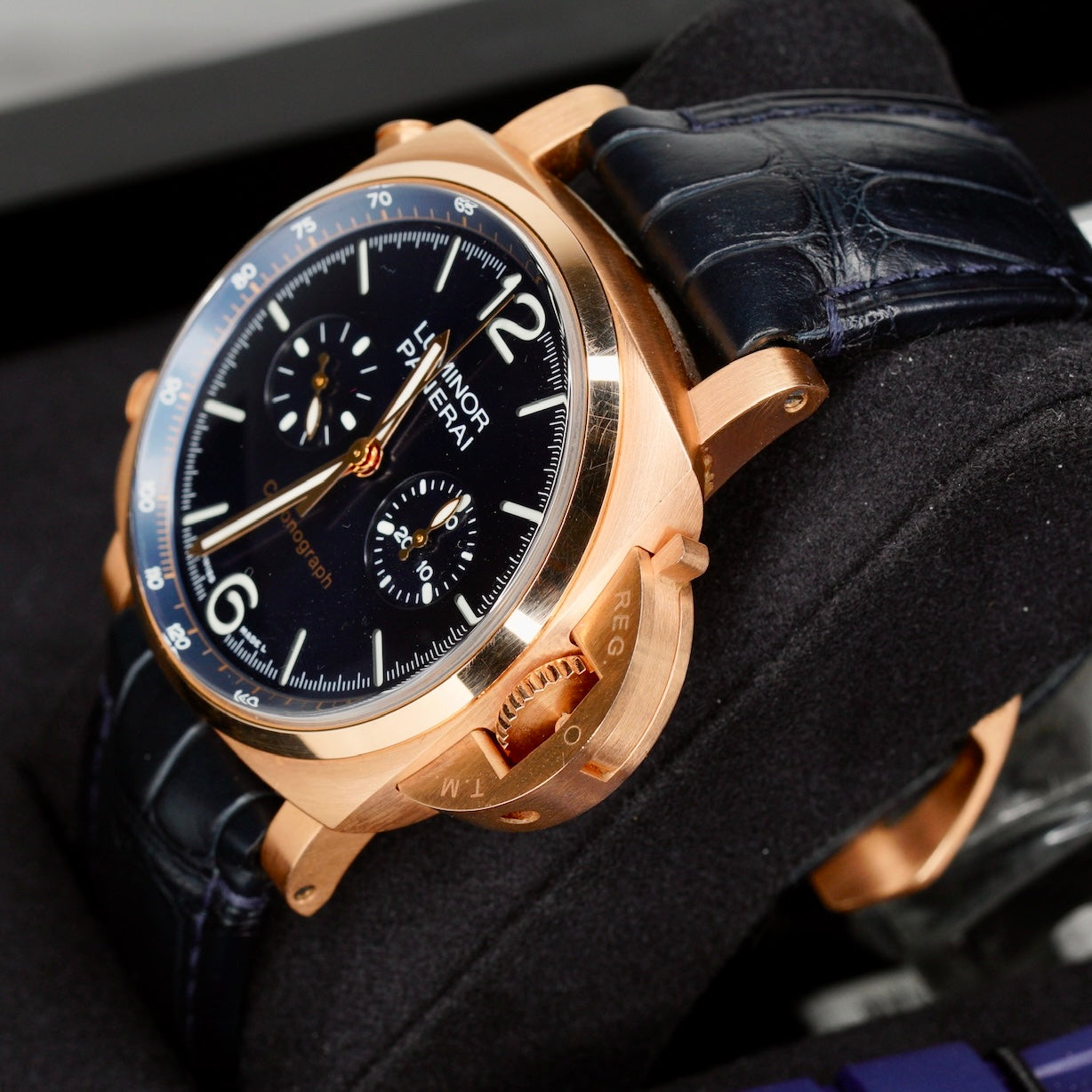 Panerai Luminor PAM 01111 Blue Dial Rose Gold Blue Leather Strap 44mm