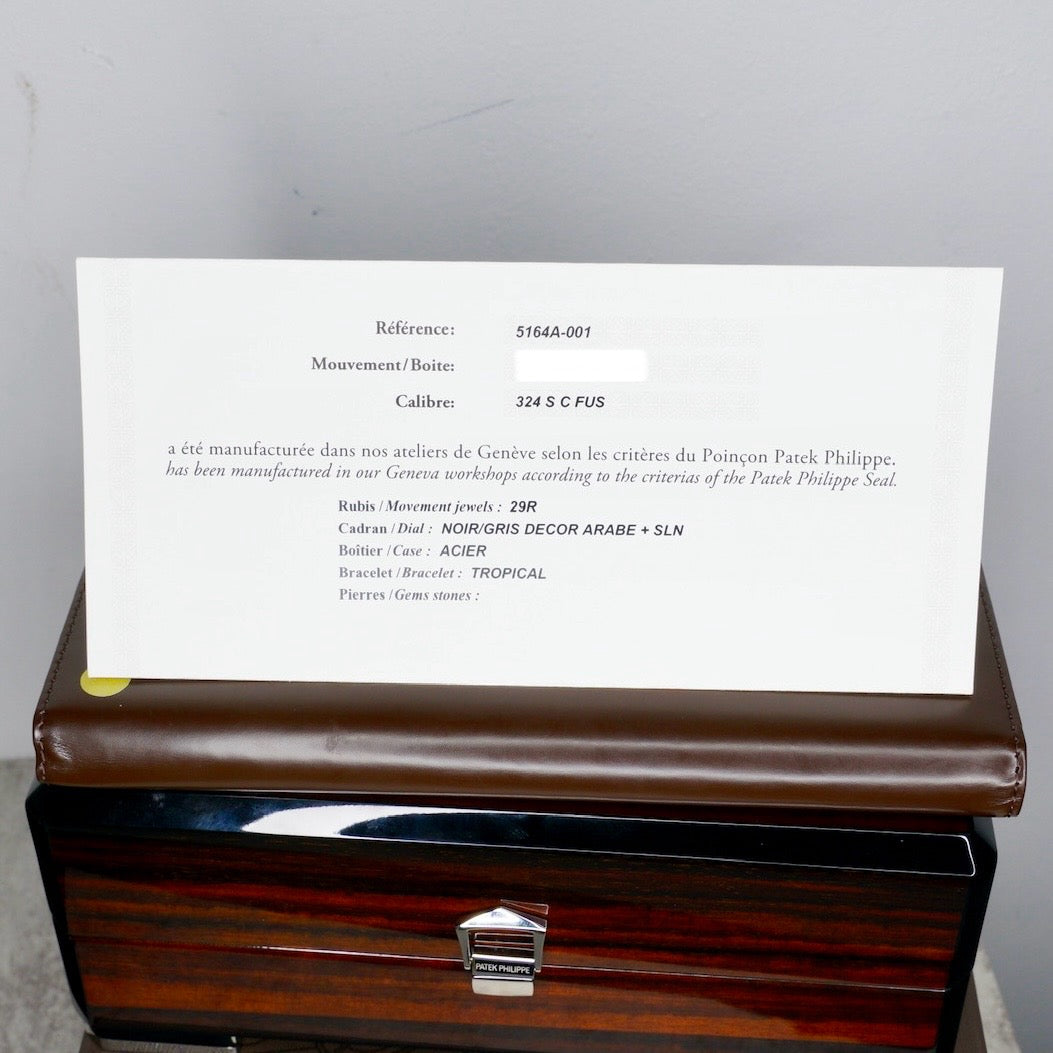 Patek Philippe Aquanaut 5164A-001 “BLACK TRAVEL TIME” Black Smoked Dial Stainless Steel Tropical Strap 40.8mm 2020