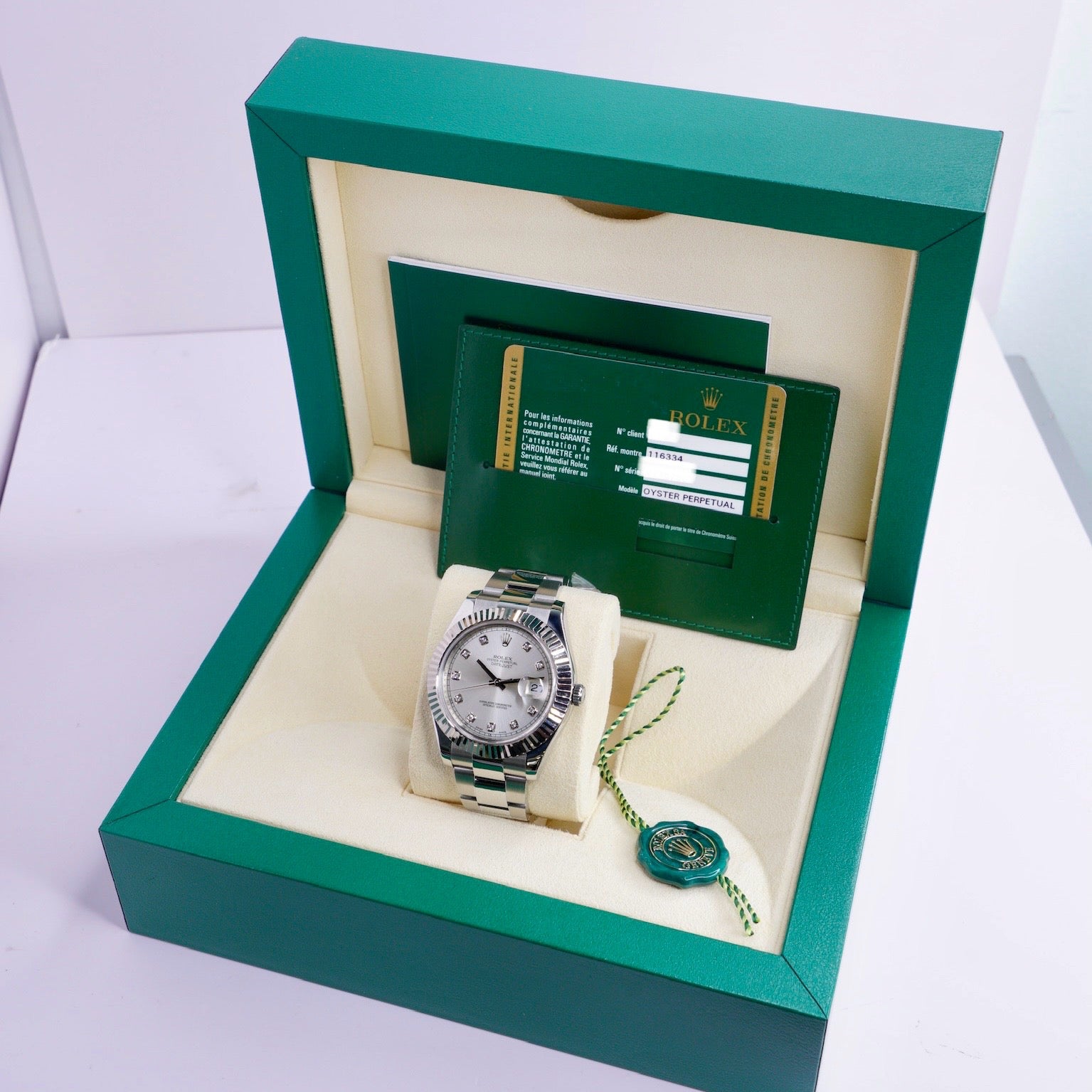 Rolex Datejust II 116334 Silver Diamond Dial Stainless Steel White Gold Bezel 41mm 2015